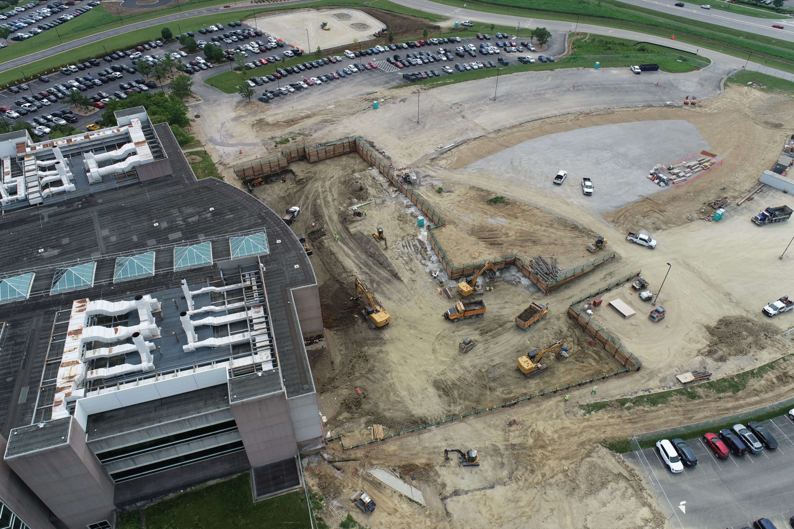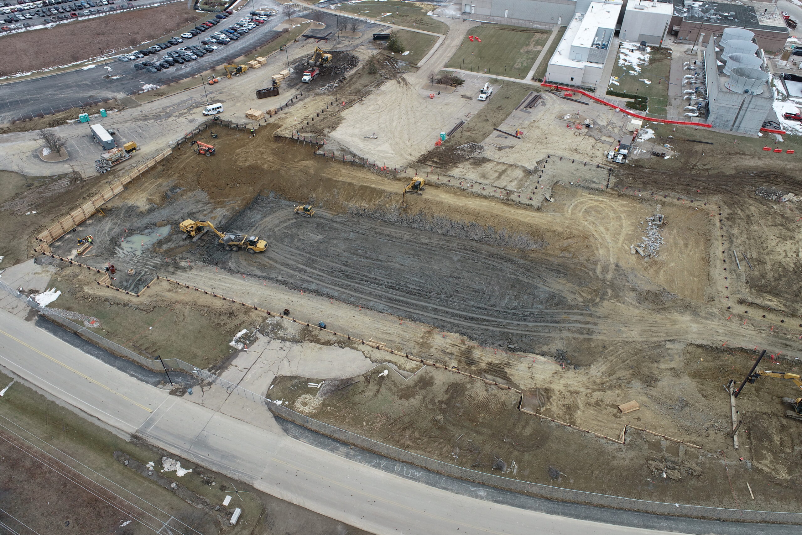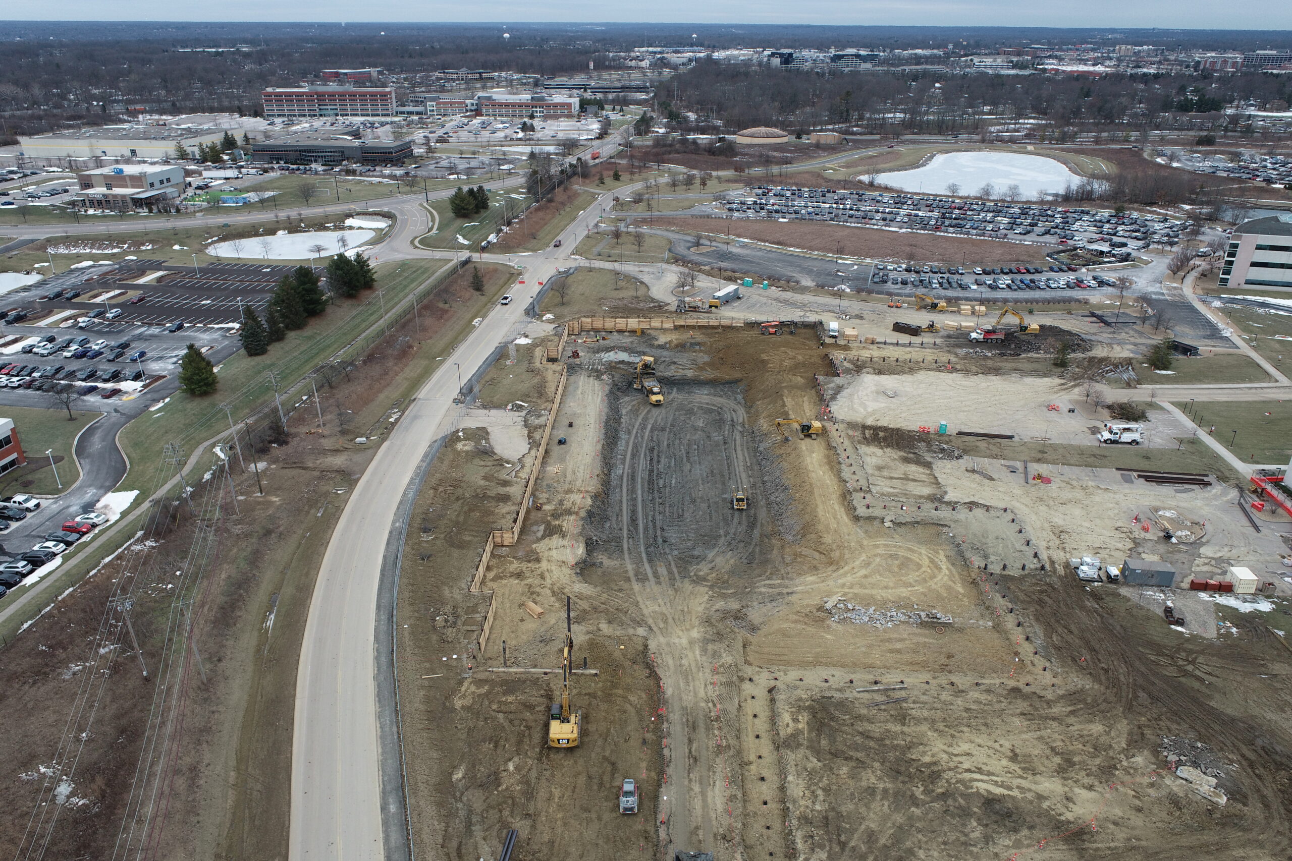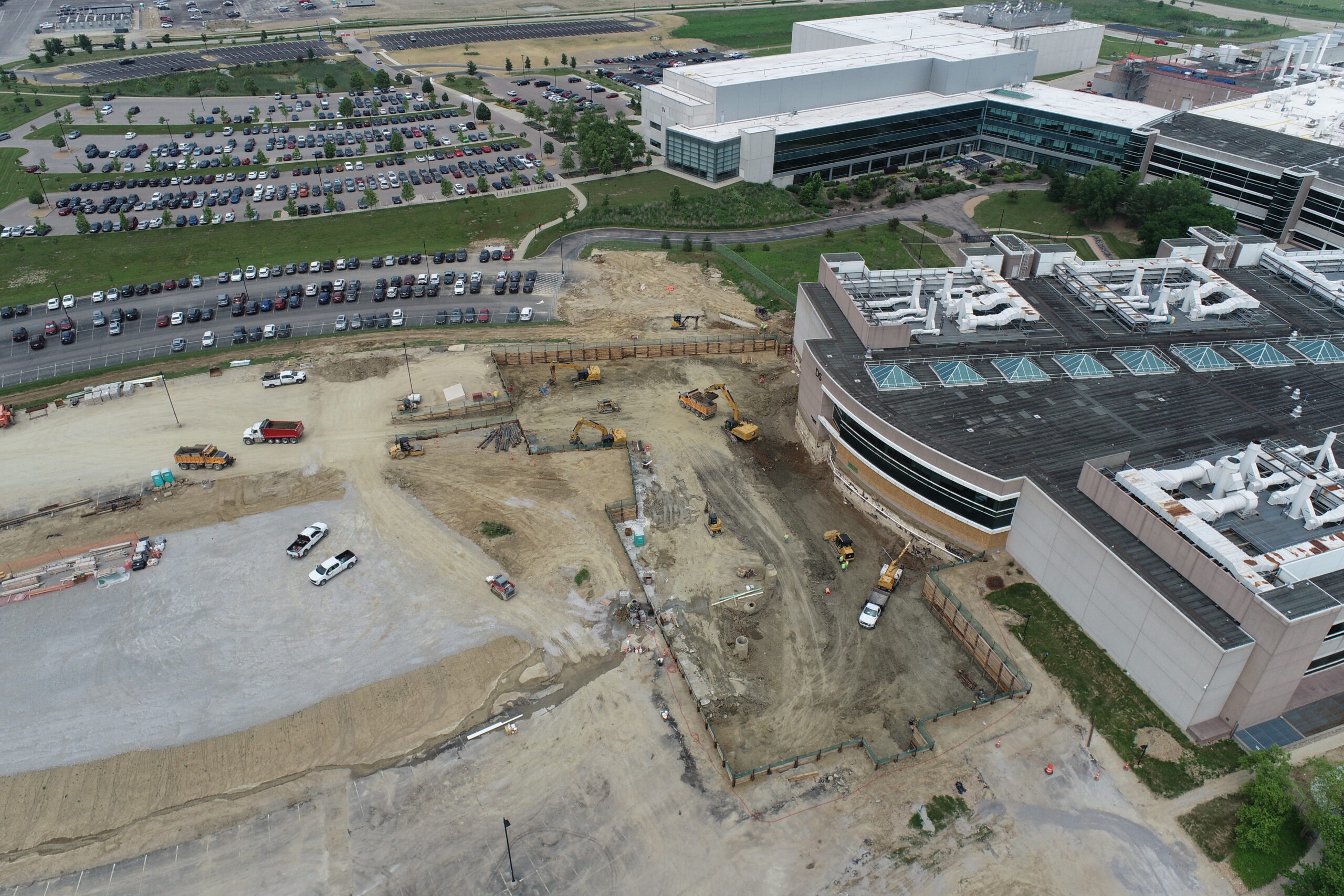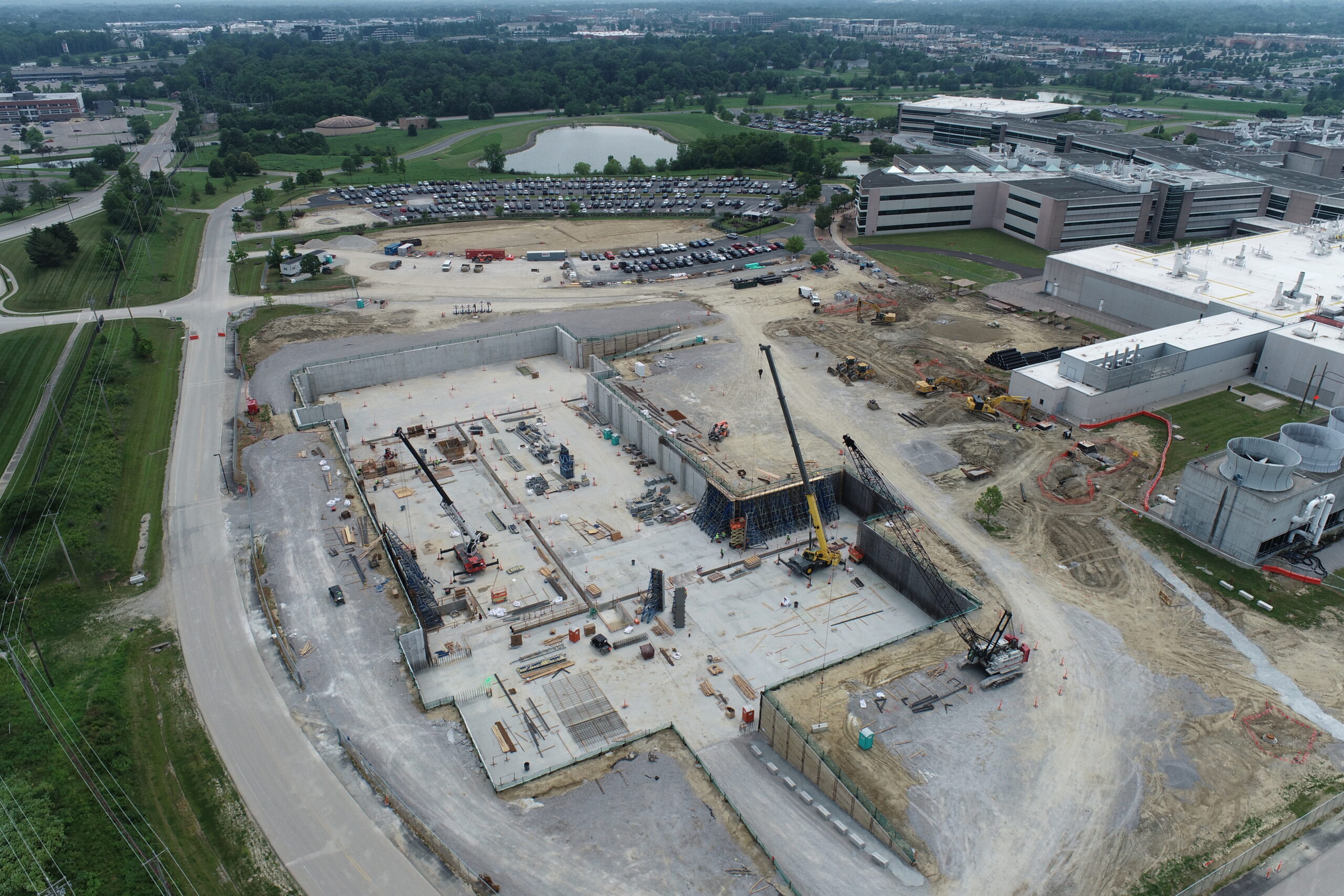 A massive $450 million expansion at P&G’s Mason campus including a 360,000sf & a 130,000sf addition. Our work included meeting an aggressive schedule during the winter months to get foundations started in basements over 20′ deep below existing parking lots as well as an intricate excavation for a new stairwell 40′ deep tying into the basement of the existing building.
